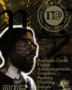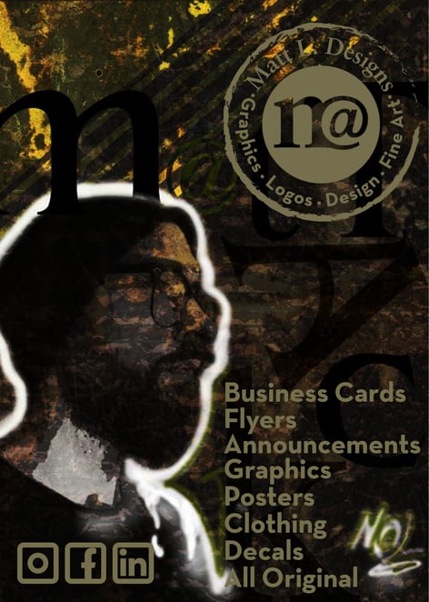 To the right is an original business posting flyer with details about services and what platforms can be found on. This is in two different variations.